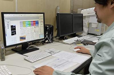 ![]() 制作作業 ![]() 色合わせ ![]() DTP作業 ![]() 刷版 ![]() 色校正作業 |